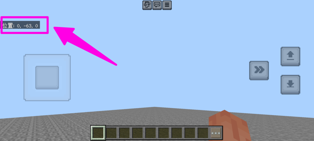 建築や装置作成を行う際は、座標表示をオンにしておくと便利です。