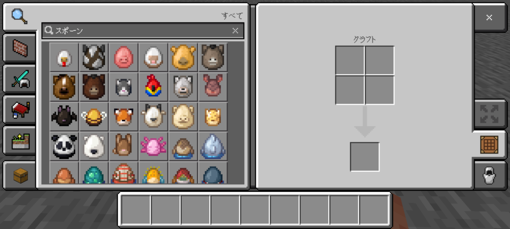 クリエイティブモードでは、通常プレイでは扱えない「スポーンエッグ」があります。