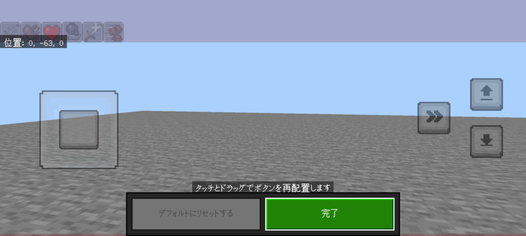 | 右側 | 上:ジャンプ(素早く2回押すと空を飛べる) 左:ダッシュ 下:スニーク(しゃがみ) |