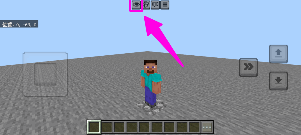 スマホ版マインクラフトの初期設定では、カメラの視点が一人称で固定されています。
